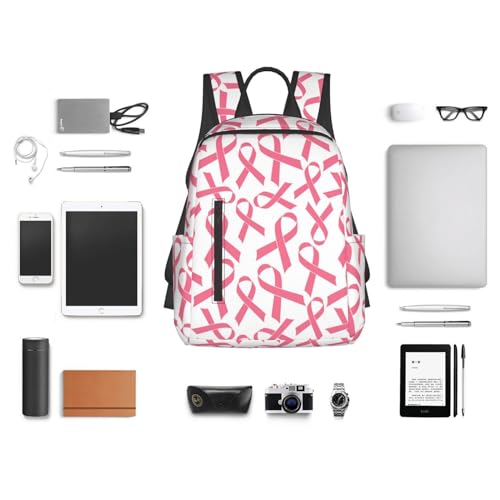 Pink Breast Cancer Ribbon Backpack Bookbag Outdoor Daypack with Adjustable Shoulder Straps Multipurpose Backpack 1
