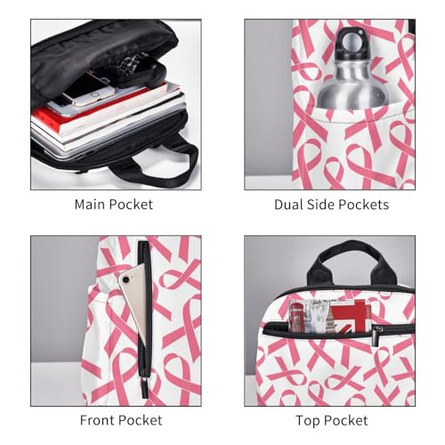 Pink Breast Cancer Ribbon Backpack Bookbag Outdoor Daypack with Adjustable Shoulder Straps Multipurpose Backpack 4