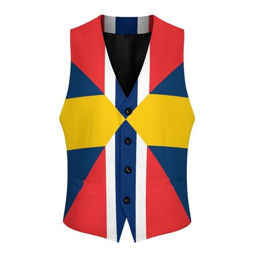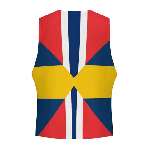Sweden Norway Union Flag Mens Suit Vests V-Neck Casual Vest Dress Formal Tuxedo Wedding Waistcoat 4