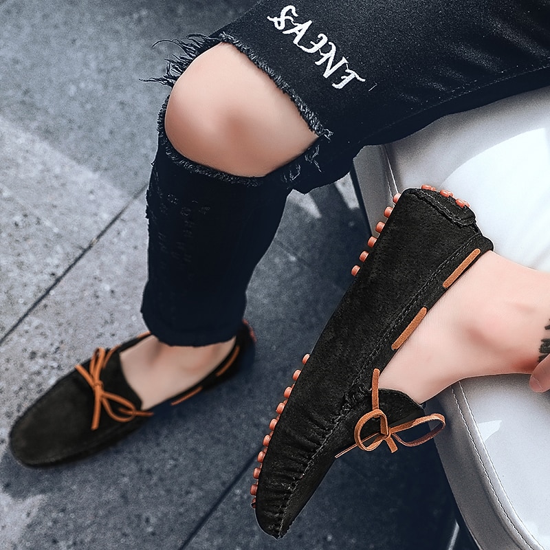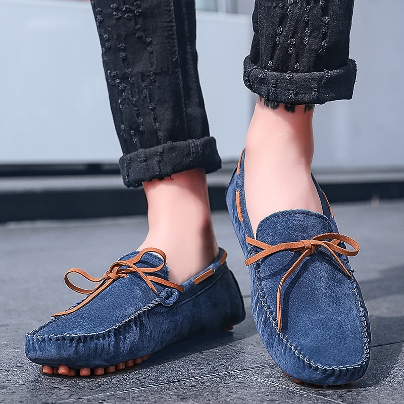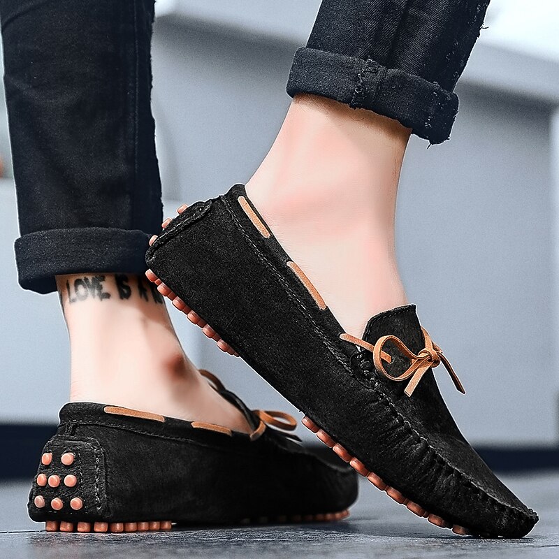 Men's Suede Driving Shoes: Flexible Slip-On Loafers with Bow Tie and Rubber Sole, Perfect for Everyday Comfort and Car Pedal Grip 21