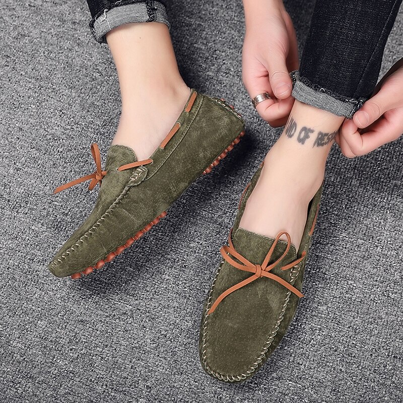 HOT ! Men's Suede Driving Shoes: Flexible Slip-On Loafers with Bow Tie and Rubber Sole, Perfect for Everyday Comfort and Car Pedal Grip