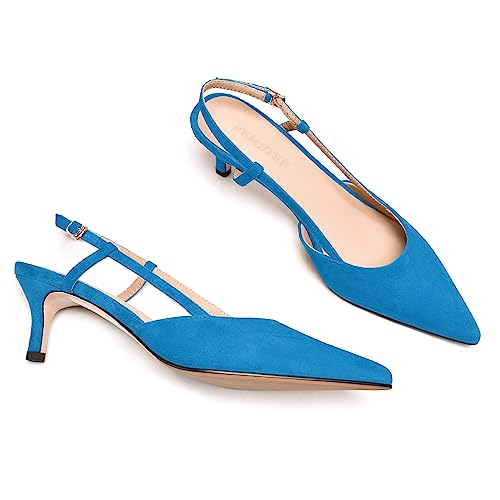 FEMSTEP Women's Kitten Heels Slingback Suede Leather Pointed Toe Cute Buckle Low Heel Pumps Shoes 2 Inch 5