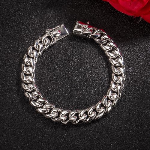 Cuban Link Bracelet 10mm 7-10 Inches Miami Hip Hop Jewelry 925 Sterling Silver Cuban Link Chain For Women Mens 7