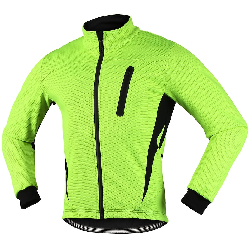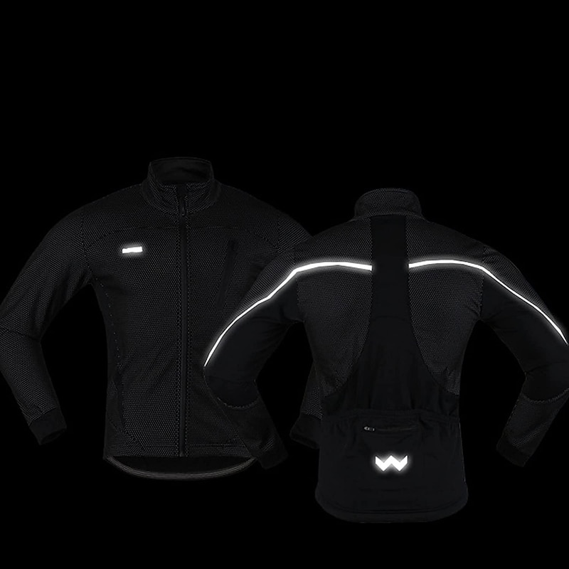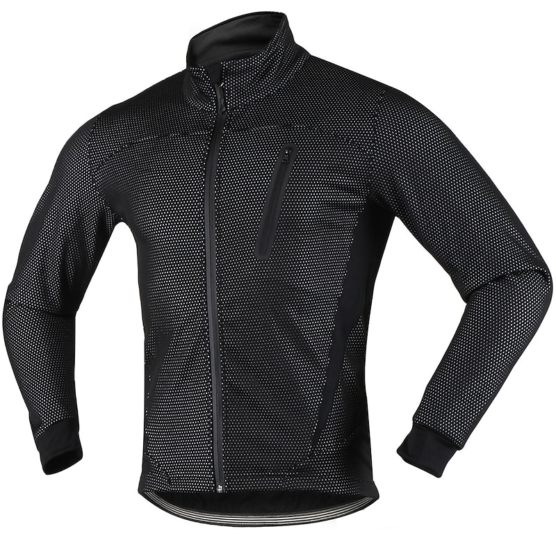 Highlights - Experience ultimate comfort and warmth with our Windproof and Water-Resistant soft shell jacket, specifically designed for outdoor activities. - Our 3-layer composite fabric and polyester fiber combination, with 85% polyester fiber and 15% spandex, guarantees a soft and comfortable inner layer, while the middle waterproof film ensures constant temperature lock, preventing any loss of body heat. - Stay safe during night exercises with reflective strips that are strategically designed on the chest and back of the jacket. - Our jacket's waterproof front panel with a 3-in-1 composite fabric ensures effective resistance against wind and rain, while the back spandex breathable patchwork quickly drains excess sweat to keep you comfortable at all times. - With five pockets, specifically two zipper pockets, have peace of mind knowing your valuables are safely and securely stored. - Perfect for those chilly winter days, our Long Sleeve Men's Jacket is Micro-elastic and features a Waterproof Zipper, ensuring Windproof and Thermal Warmth for any outdoor activities. - Our beautifully designed Fleece Lining adds an element of warmth and comfort, making it perfect for Mountain Bike MTB and Road Bike Cycling activities.