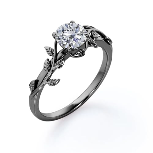 Nature Inspired Leaf 1 Carat Round Cut - 6 MM - Moissanite Engagement Ring, Solitaire Moissanite Bridal Ring, 18k Gold Plated Vintage MoissaniteStatement Ring For Women Gift's 7