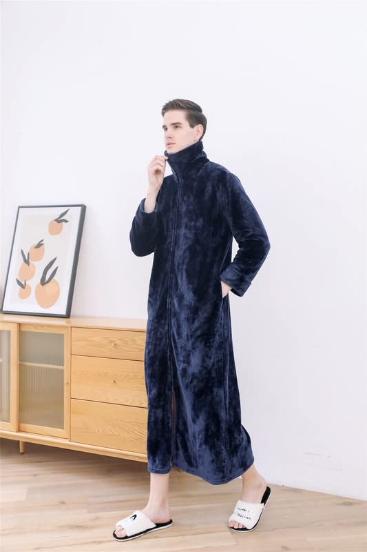 HOT ! Shanghai Story Mens Womens Flannel Robe Zipper Front Robes Full Length Bathrobe for Couple