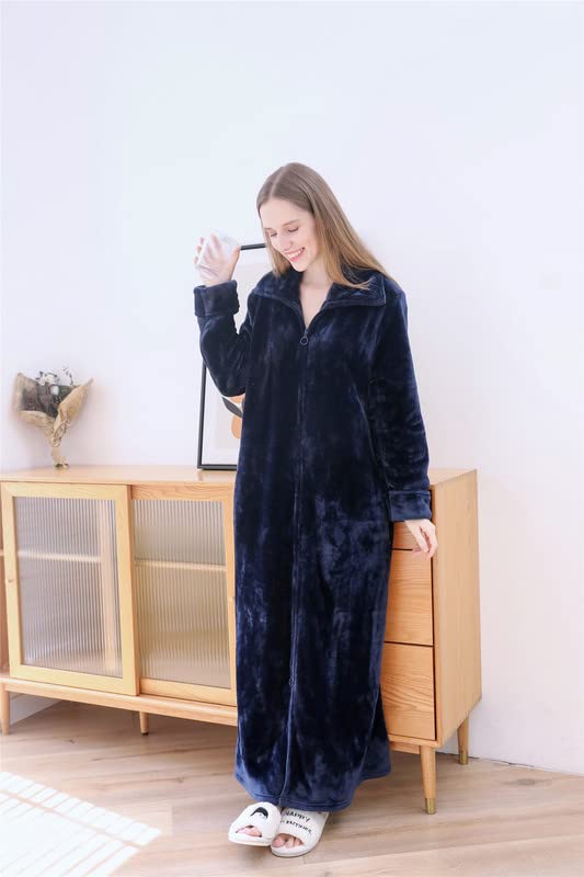 Shanghai Story Mens Womens Flannel Robe Zipper Front Robes Full Length Bathrobe for Couple 7