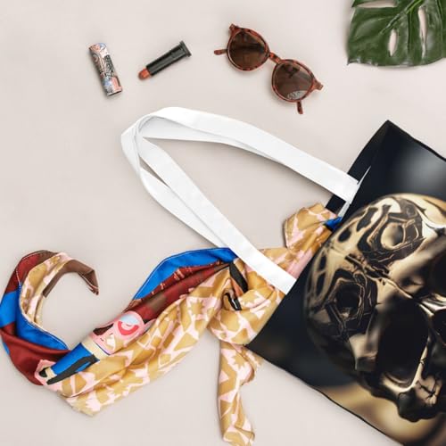 HOT ! Skull Rock Roll Skeleton Bone Print Polyester Canvas Tote Bag, Shopping Bag With Reinforced Handles, Reusable