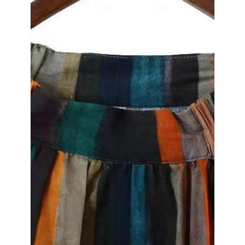 More information about Women's Skirt A Line Fashion Casual Maxi High Waist Skirts Striped Pocket Print Micro-elastic Street Daily Red Summer Polyester