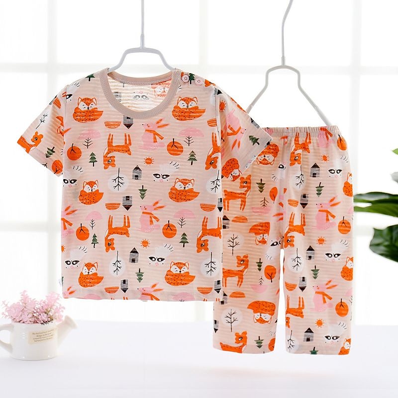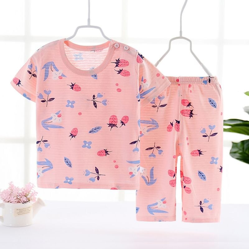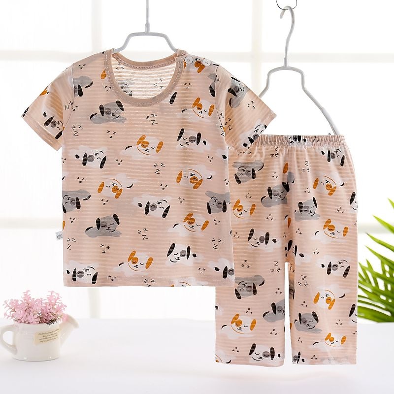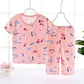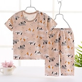 HOT ! Toddler Boys 2 Pieces Pajama Sets Short Sleeve White Pink Navy Blue Animal Cartoon Crewneck Summer Spring Basic Home 3-7 Years