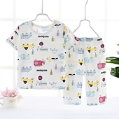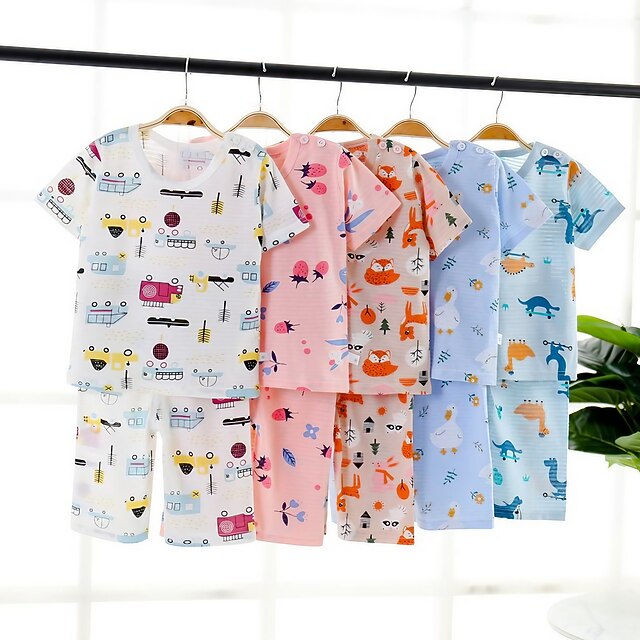 More information about Toddler Boys 2 Pieces Pajama Sets Short Sleeve White Pink Navy Blue Animal Cartoon Crewneck Summer Spring Basic Home 3-7 Years