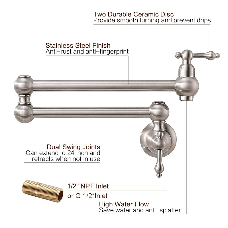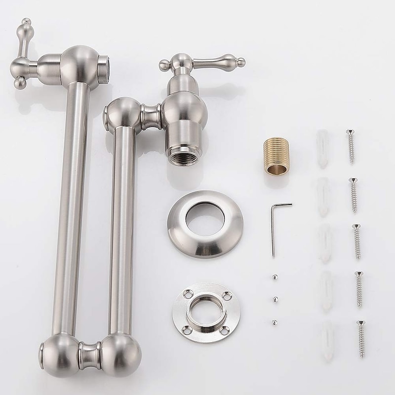 More information about Kitchen Faucet,Wall Mounted Pot Filler Brass Two Handles One Hole Nickel Brushed Foldable Faucet