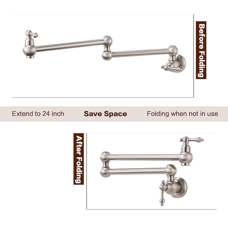 Kitchen Faucet,Wall Mounted Pot Filler Brass Two Handles One Hole Nickel Brushed Foldable Faucet 4