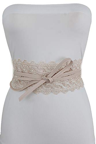 Women Wide Floral Lace Fabric Waistband Wrap Around Chic Fashion Tie Belt Size S M L 4