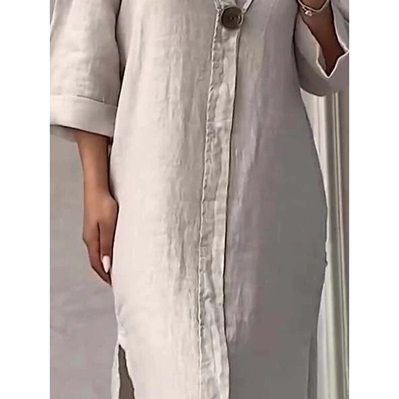 More information about Women's Long Dress Maxi Dress Linen-Inspired Dresses Cotton Linen Dress Hawaiian Regular Fit Solid Color Long Sleeve Crew Neck Light Blue Apricot Summer Spring