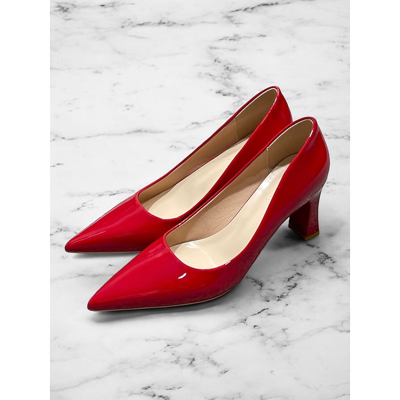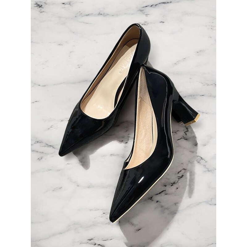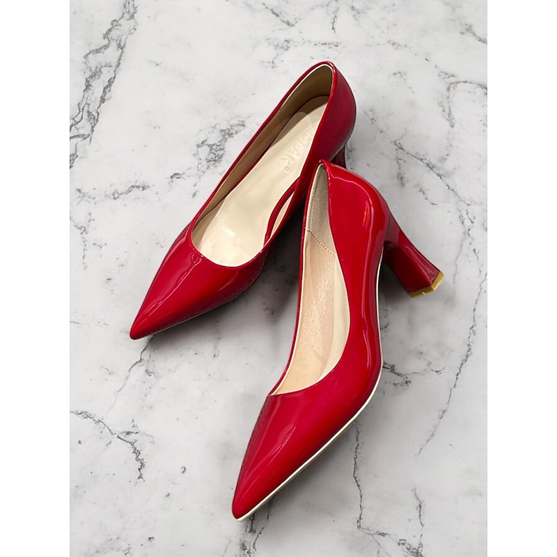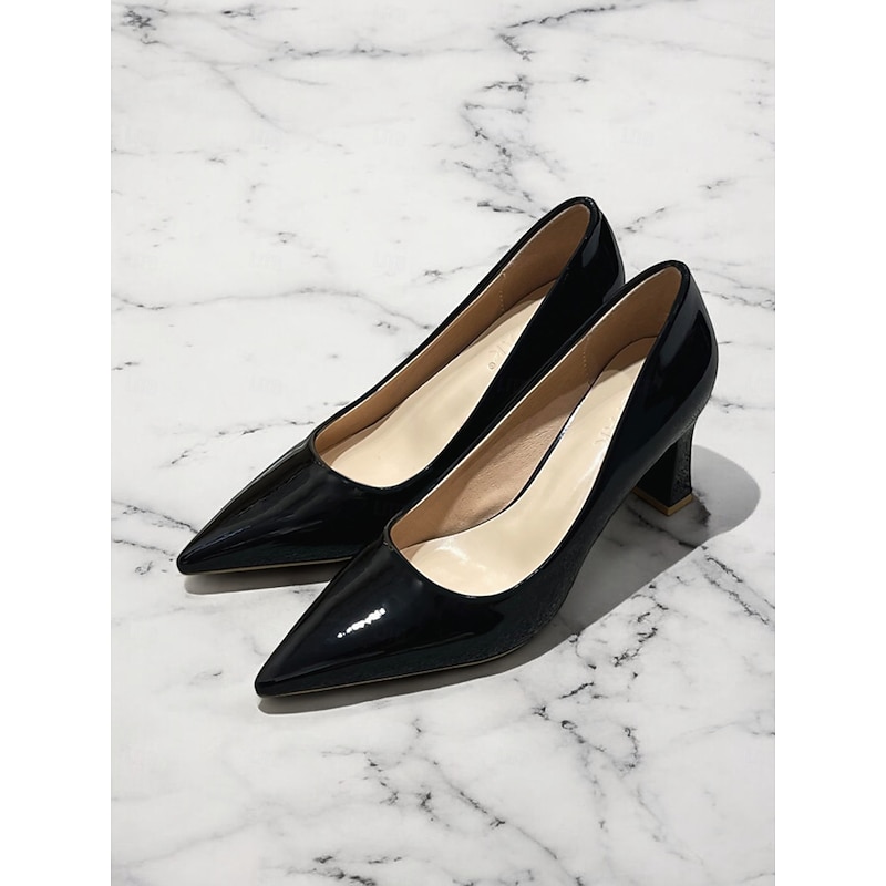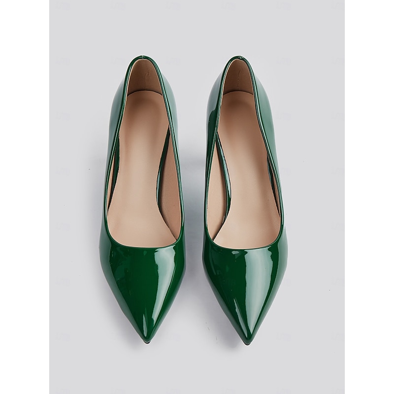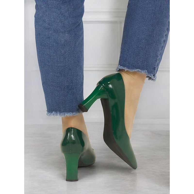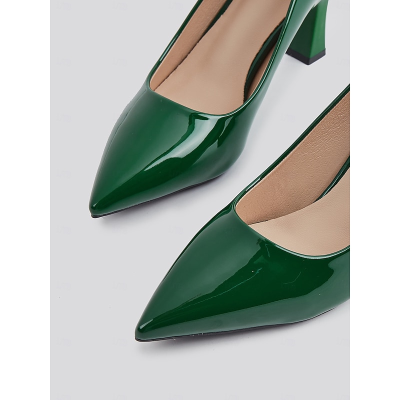Highlights [Fabric and Material] : Crafted from glossy patent faux leather, these pumps are both durable and eye-catching. The upper material ensures a sleek finish in a bold green hue, making it a standout addition to any wardrobe. [Style and Fit] : Featuring a classic pointed toe design, these pumps offer a sophisticated silhouette. The mid-height chunky heel provides both comfort and style, making them suitable for extended wear throughout the day. [Design Highlights] : These elegant pumps come with a pointed toe and a stable block heel design. The glossy finish and vibrant color add a touch of modernity and elegance to the shoe, making them versatile for various outfits. [Occasions] : Perfect for business meetings, office settings, and everyday work environments, these pumps add a pop of color and elegance to any ensemble. They're suitable for formal occasions as well as for enhancing casual outfits. [Size Range] : Available in a wide range of sizes to fit your needs, including US5.5 to US10.5 and corresponding European and UK sizes, ensuring a fit for a variety of foot shapes and sizes.