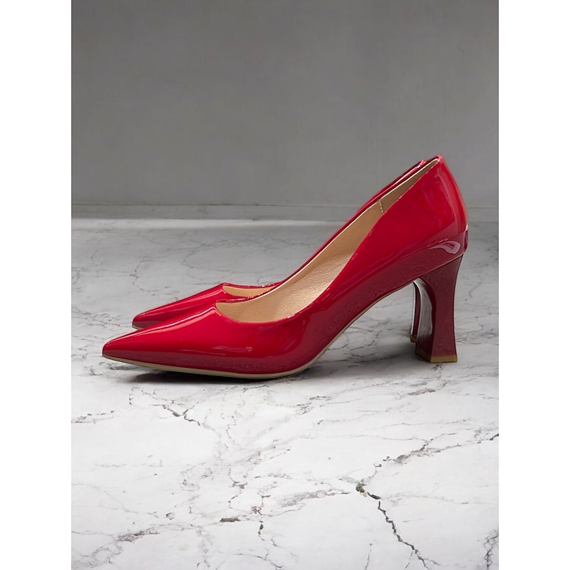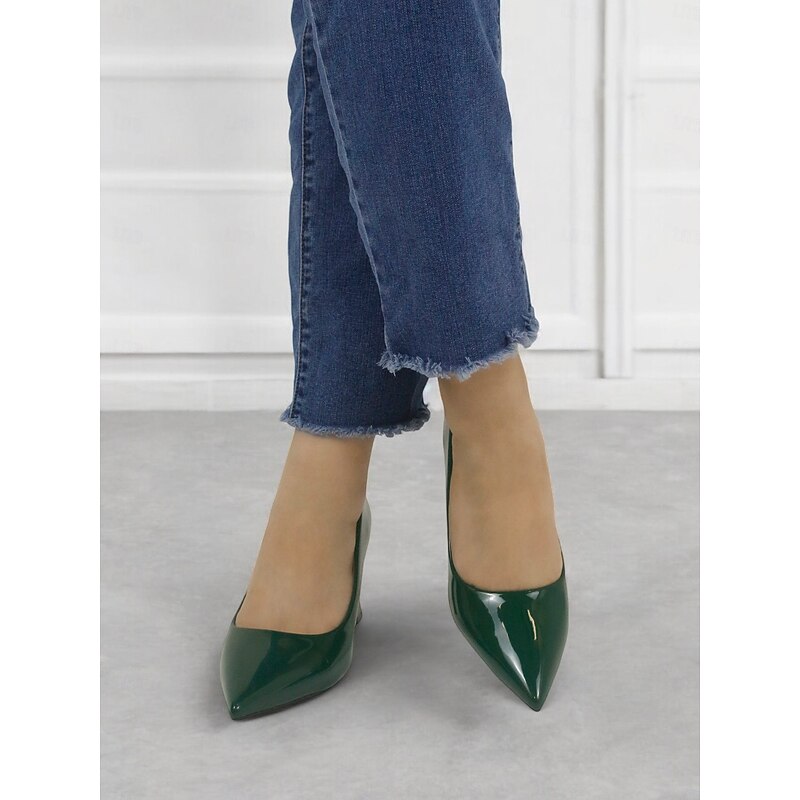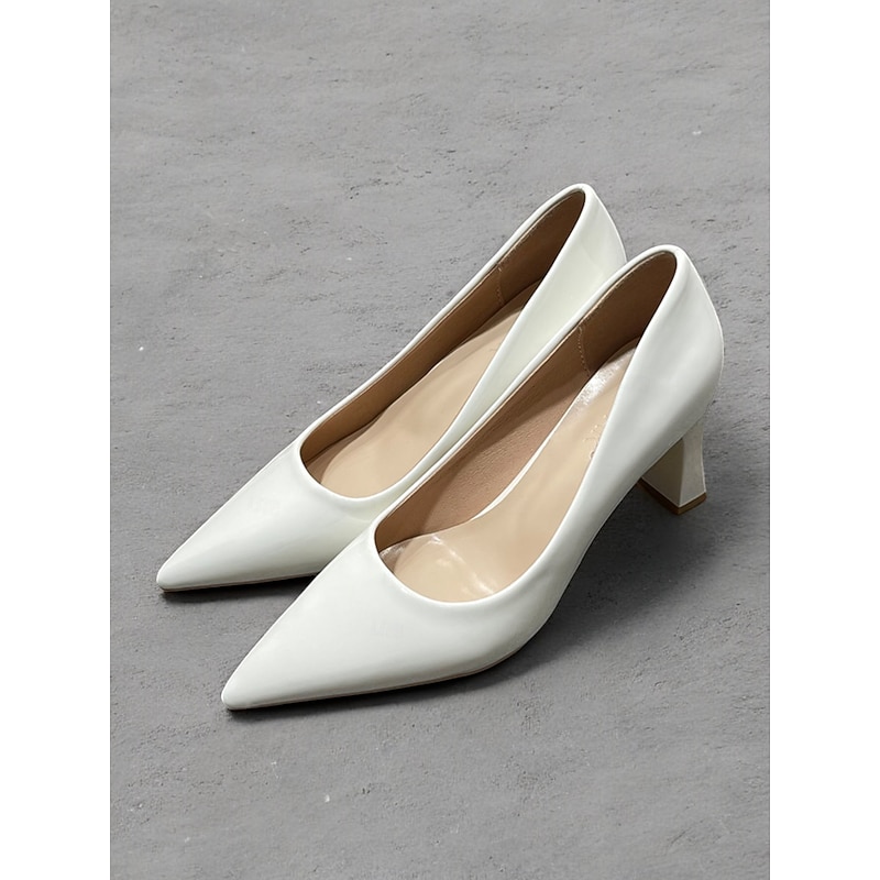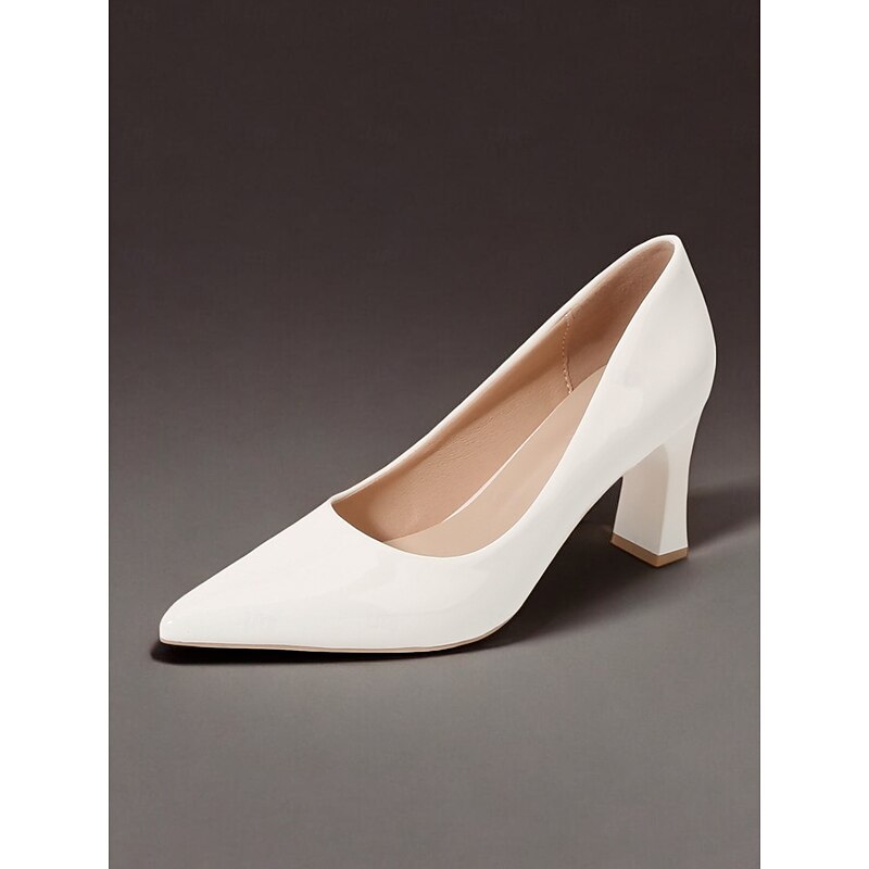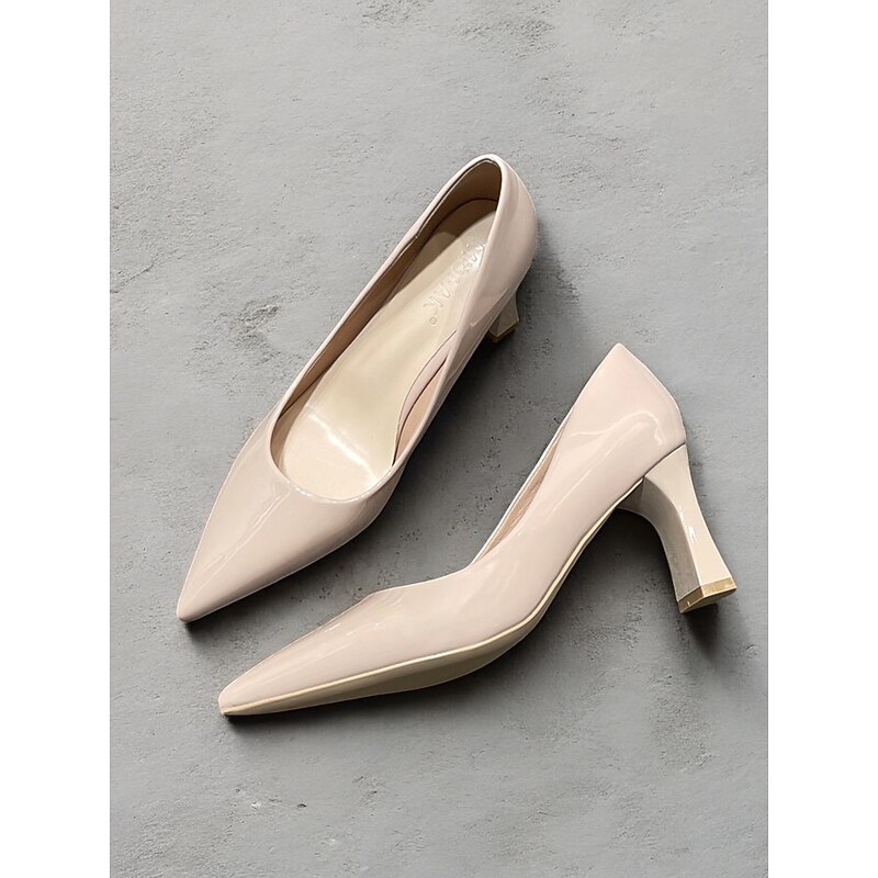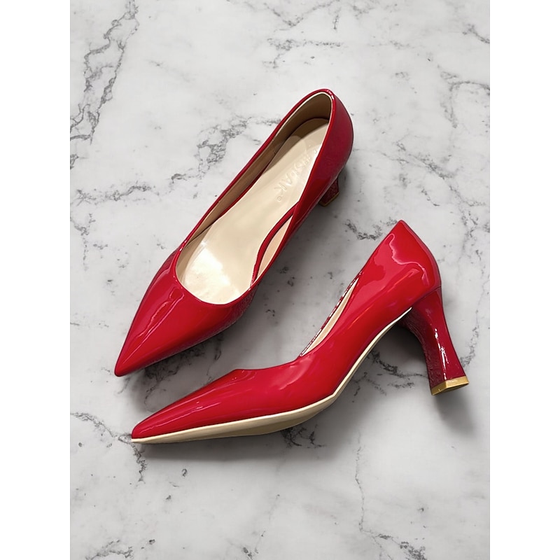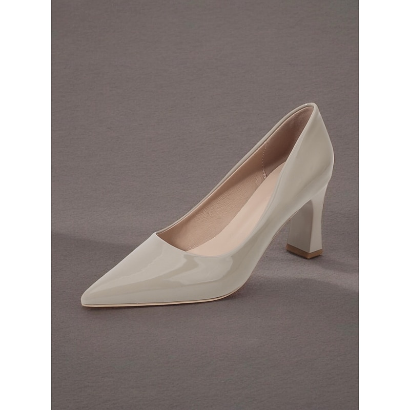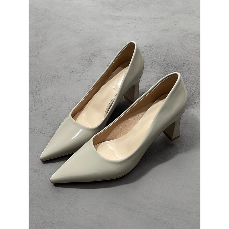 Highlights [Fabric and Material] : Crafted from glossy patent faux leather, these pumps are both durable and eye-catching. The upper material ensures a sleek finish in a bold green hue, making it a standout addition to any wardrobe. [Style and Fit] : Featuring a classic pointed toe design, these pumps offer a sophisticated silhouette. The mid-height chunky heel provides both comfort and style, making them suitable for extended wear throughout the day. [Design Highlights] : These elegant pumps come with a pointed toe and a stable block heel design. The glossy finish and vibrant color add a touch of modernity and elegance to the shoe, making them versatile for various outfits. [Occasions] : Perfect for business meetings, office settings, and everyday work environments, these pumps add a pop of color and elegance to any ensemble. They're suitable for formal occasions as well as for enhancing casual outfits. [Size Range] : Available in a wide range of sizes to fit your needs, including US5.5 to US10.5 and corresponding European and UK sizes, ensuring a fit for a variety of foot shapes and sizes.