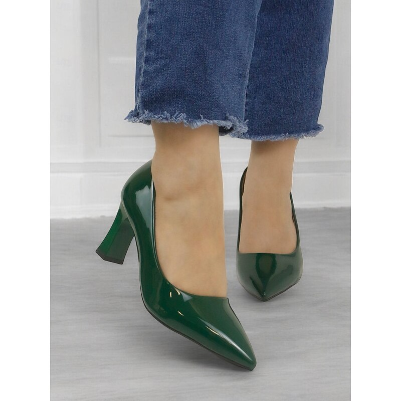 Glossy Green Patent Faux Leather Pointed-Toe Block Heel Pumps – Elegant Formal Shoes for Women 21