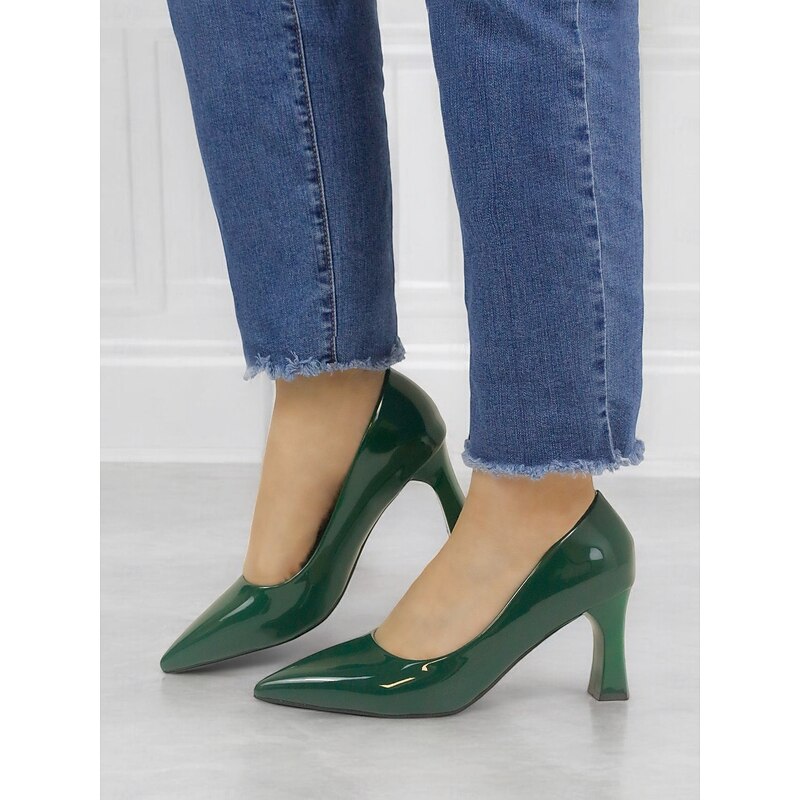 More information about Glossy Green Patent Faux Leather Pointed-Toe Block Heel Pumps – Elegant Formal Shoes for Women