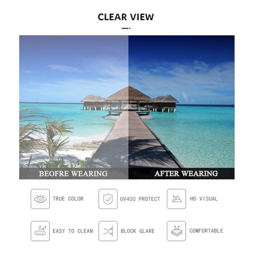 • 【UV400 Protection Lens】Sunglasses Lenses with UV400 protection coating, protect your eyes against long term UV damage. High-Definition Lens Gives you a Natural & Clear Vision, and keeping your eyes healthy.