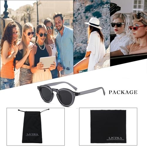 LJCZKA Vintage Round Sunglasses Mens Womens Classic Retro Circle Sun Glasses Trendy Unisex UV400 Protection Driving Outdoor 1