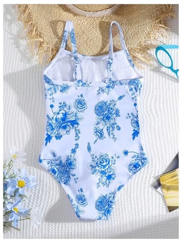 OYOANGLE Girl's Boho Floral One Piece Swimsuit Ruched Beach Sports Bathing Suit Swimwear