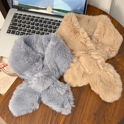 1pcs Winter Thicken Plush Cross Scarves Soft Scarves Women Cold Protection Neck Warmer Elegant Scarf,82 * 10CM 2