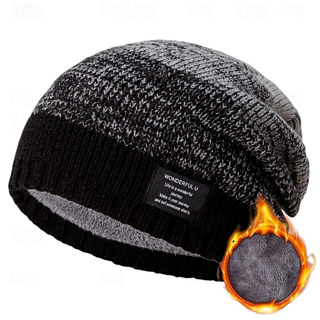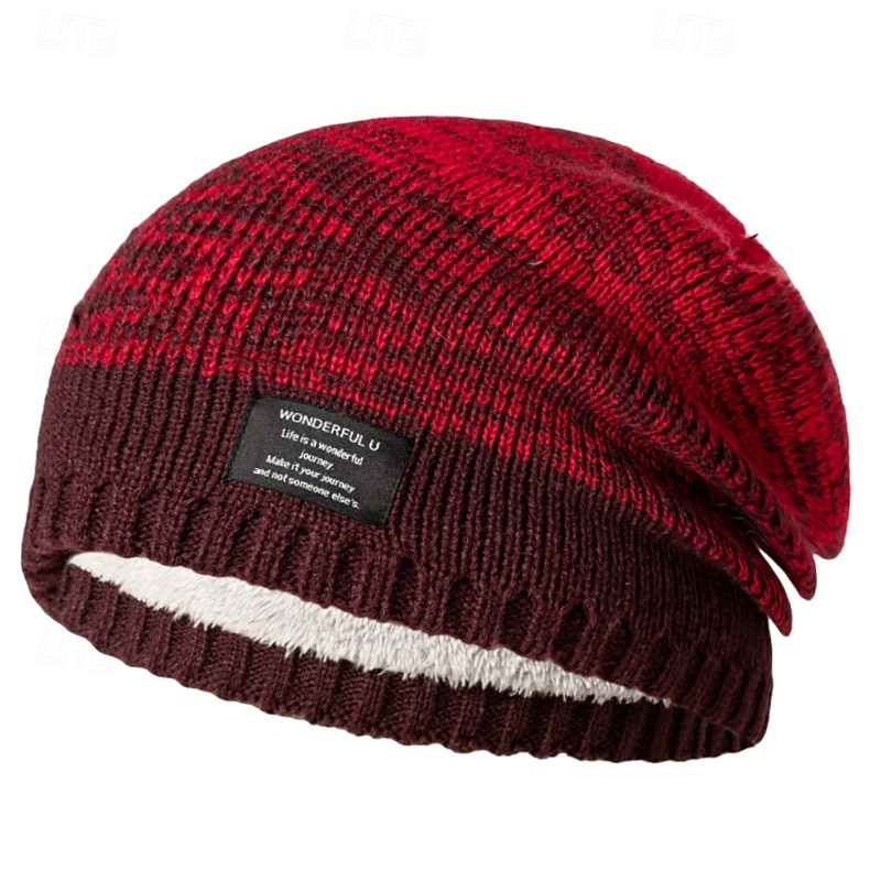 More information about Men's Unisex Beanie Hat Winter Hats Beanies Skull Cap Knit Hat Red khaki Acrylic Fibers Knitted Cozy Daily Wear Going out Color Block Warm