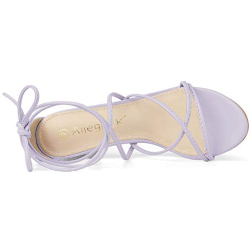 Allegra K Women's Strappy Lace Up Chunky Heeled Light Purple Heels Sandals 7.5 M US 6