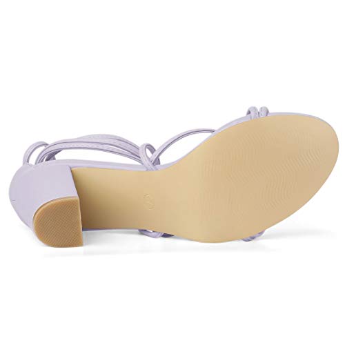 Allegra K Women's Strappy Lace Up Chunky Heeled Light Purple Heels Sandals 7.5 M US 5