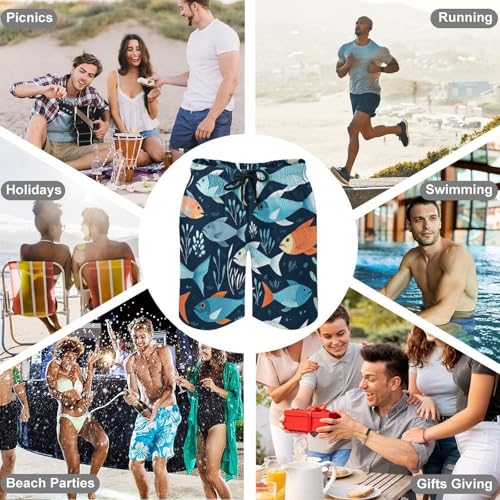 Mens Shorts Fishes Pattern Men Swim Trunks Quick-Dry Beach Shorts with Drawstring Pocket Bathing Suit 6