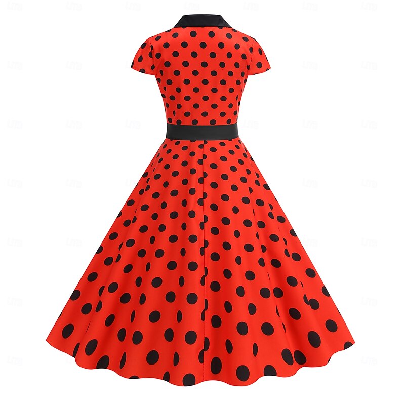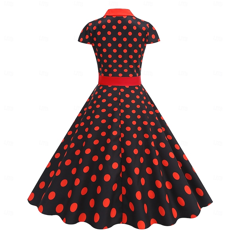 More information about Retro Vintage 1950s Rockabilly Midi Swing Dress Flare Dress Shirt Dress Fit and Flare Polka Dot Fancy Dress Women's Halloween Carnival Vacation Casual Daily Retro Theme Party Adults' Dress Belt