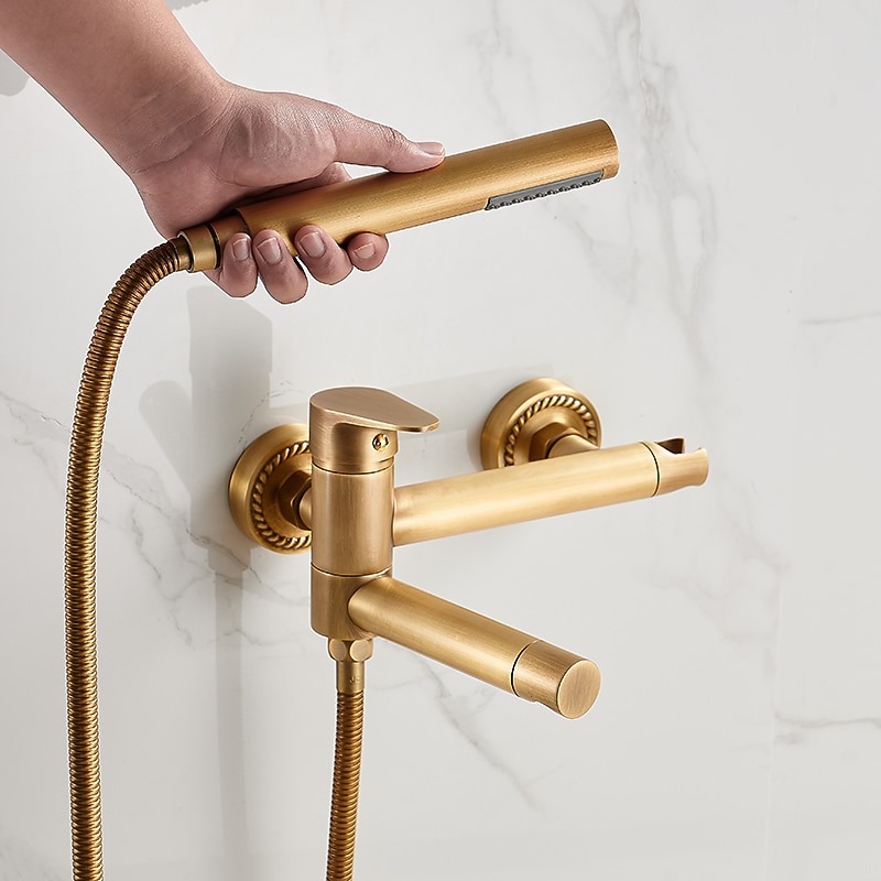 $145.99 - Vintage Bathtub Faucet Dual Spout Wall Mounted Golden, Bath Tub Filler Mixer Brass Tap with Heldhand Showerhand, Ceramic Valve Single Handle Control 2025. Shop for cheap Bathtub Faucets online? Buy at lightinthebox.com on sale today!