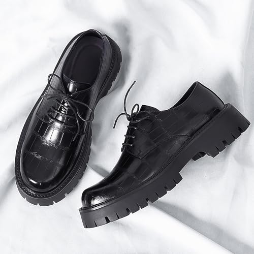 Men's Printed Leather Platform Oxford Dress Shoes Classic Lace Up Anti-Slip Lug Sole Block Heel Formal Oxfords for Wedding Office Business 6