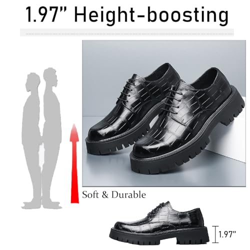 More information about Men's Printed Leather Platform Oxford Dress Shoes Classic Lace Up Anti-Slip Lug Sole Block Heel Formal Oxfords for Wedding Office Business