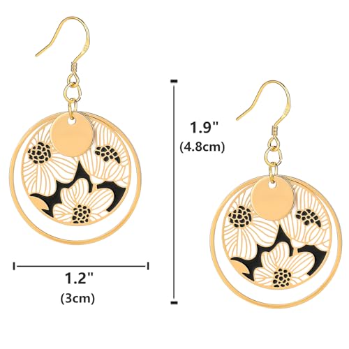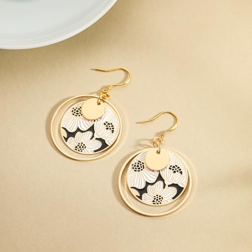 Boho Flower Earrings, Gold Hoop Earrings, Dangle Round Disc Earrings for Women, Handmade Bohemian Trendy Boho Floral Jewelry Gift, Hypoallergenic 6
