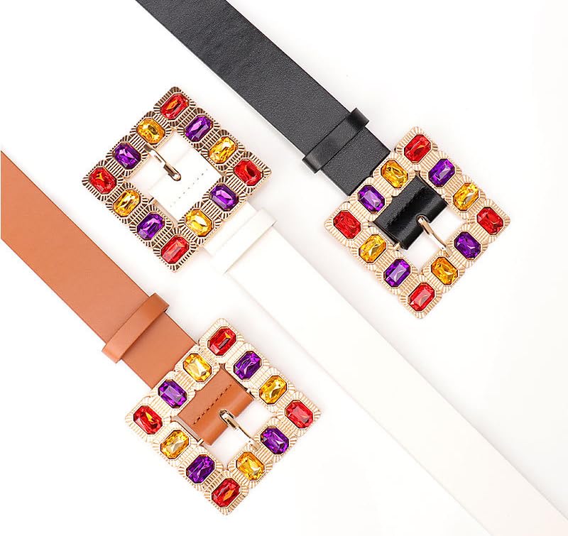 More information about Women's Colorful Rhinestone Square Buckle Leather Belt for Jeans Dresses Pants