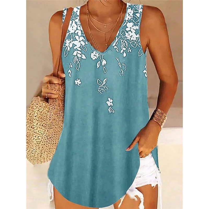 HOT ! Women's Camisole Tank Top Floral Stylish Casual Sleeveless U Neck Regular Tops Daily Print Sky Blue Purple Green Summer