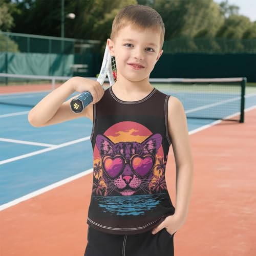 Cat Palms Sunset Orange Boys Tank Tops Toddler Sleeveless Tank Top Undershirts for Sports,3T 4