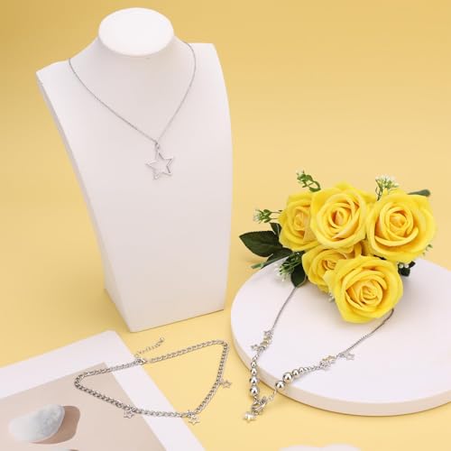 Material: Stainless SteelMetal type: ZincChain type: CrisscrossGem type: No GemstonePackage Content: You will receive a star silver necklace, which is an aesthetic stacked necklace composed of three different necklaces, it is very special and exquisite.Product Size: The sizes of the three necklaces are respectively 35+7cm/13.8+2.8in, 45+7cm/17.7+2.8in, and 50+7cm/19.7+2.8in. The three necklaces are of different lengths, making them a very impressive accessory.Premium Material: Our product is made of iron, copper, alloy, and CCB materials. It is of excellent quality, sturdy and durable, not easy to break or damage. It is pleasant to wear and you can use it with confidence.Special Design: This necklace adopts a fashionable, eye-catching and special design, with multi-layer silver chains and star-shaped pendants, creating a cool style, which can add charm and sophistication to your corruption, showing your personality and fashion avant-garde.Perfect Gift: This innovative star necklace can be worn as a jewelry accessory for your daily outfit, adding a fresh touch to your style. It can also be given as a gift to family and friends. Please note that this product is only suitable for people aged 16 and above. Be cautious of the risk of suffocation of small parts.