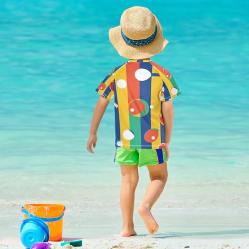 Fabric type: 92% Polyester, 8% SpandexCare instructions: Machine WashOrigin: ImportedClosure type: Pull OnMaterial: 86% polyester+14% spandex; Using micro elastic fabric, this short sleeved sunscreen jacket can stretch freely with children's movements, providing flexible support for diving, paddling, or sandblasting.Skin Protection: Designed specifically for children, this children's sunscreen swimsuit is made of UPF50+fabric, which can block 98% of UVA/UVB ultraviolet rays regardless of dry or wet conditions. The material is resistant to chlorine and salt, ensuring long-term protection during beach play and swimming pool training. As an ideal choice for children's swimsuits, the fabric maintains bright colors and sun protection performance even after repeated exposure to harsh environments.Quick Drying: This sunscreen swimsuit can quickly remove moisture and keep children fresh without stickiness. The low water protection fabric avoids discomfort and the lightweight and breathable structure ensures all day comfort during summer camping or backyard water play. Swimwear has the characteristic of quick drying, eliminating dampness and reducing luggage troubles during beach vacations.Worry Free: Unlike easily washed away sunscreen, this children's sun protection swimsuit provides reliable chemical free UV protection, reducing the need for repeated application. Quick drying fabrics are easy to wash and machine wash without fading, and resistant to odors.Ideal Gift: Convenient care and vibrant prints that children love, a must-have item for their pool days, beach vacations, or outdoor summer camps, with no compromise on sun safety. superb for everyday use. superior materials and excellent craftsmanship ensure long-lasting durability.