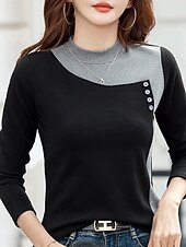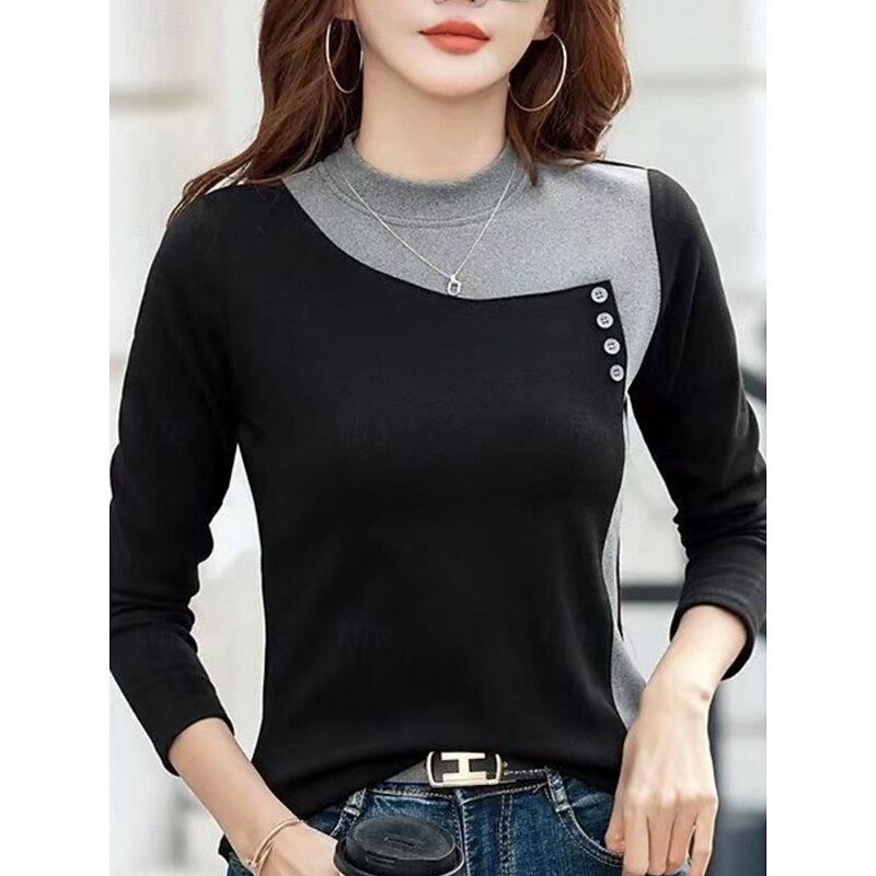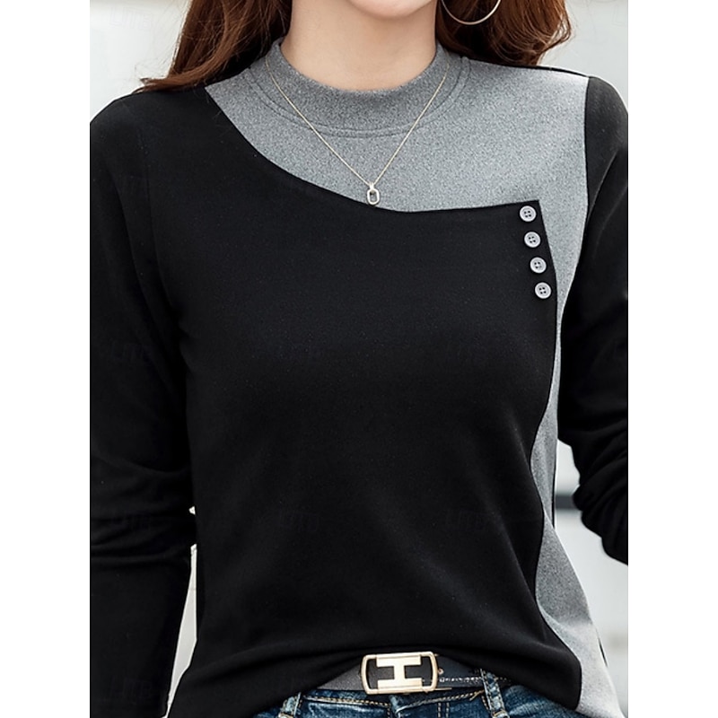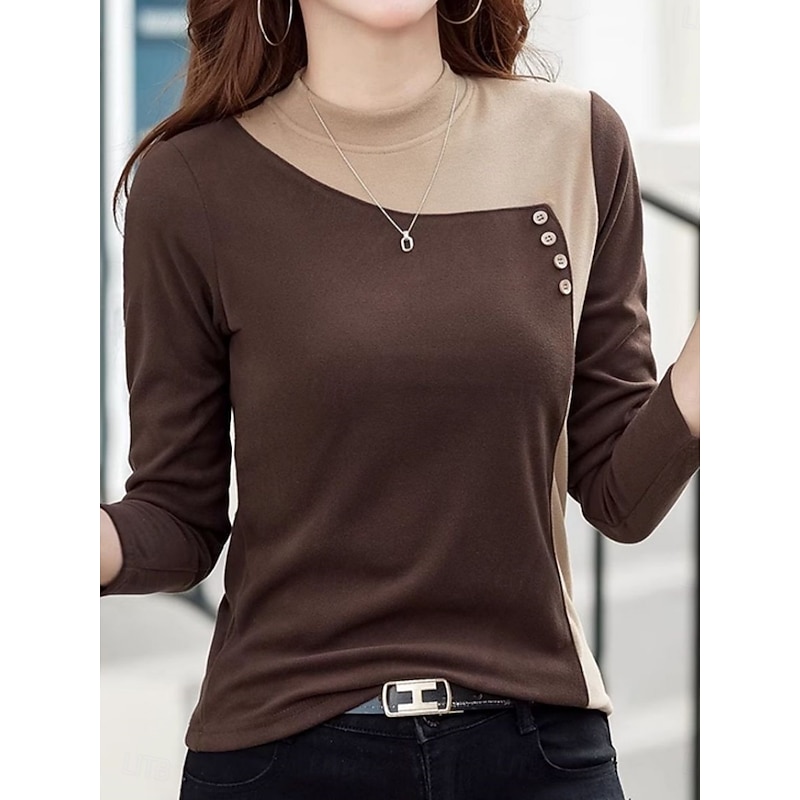 $14.99 - Women's Geometric Patchwork Blouse Stylish Casual Long Sleeve High Neck Tops for Daily Wear in Black Brown and Gray Suitable for Spring Fall and Winter 2025. Shop for cheap Plain Tops online? Buy at lightinthebox.com on sale today!