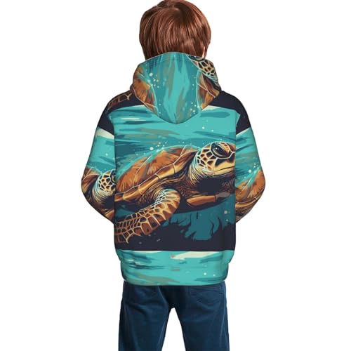 Green Turtle in Sea Water Kids Pullover Hoodies Boys Sweatshirts Girls Athletic Clothes with Pocket
