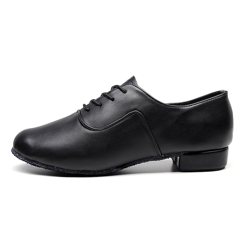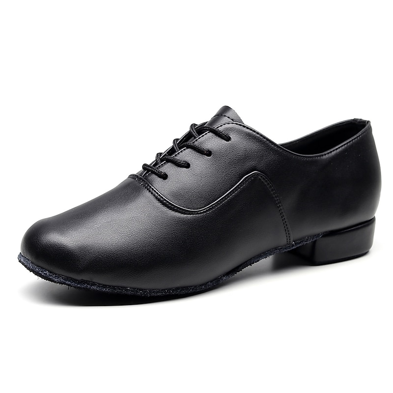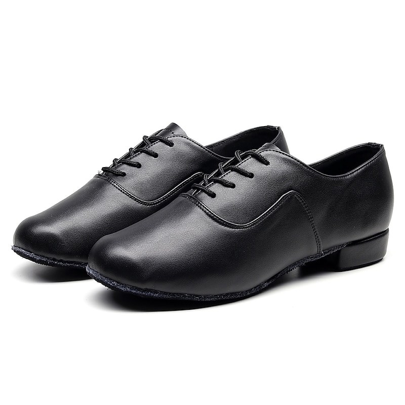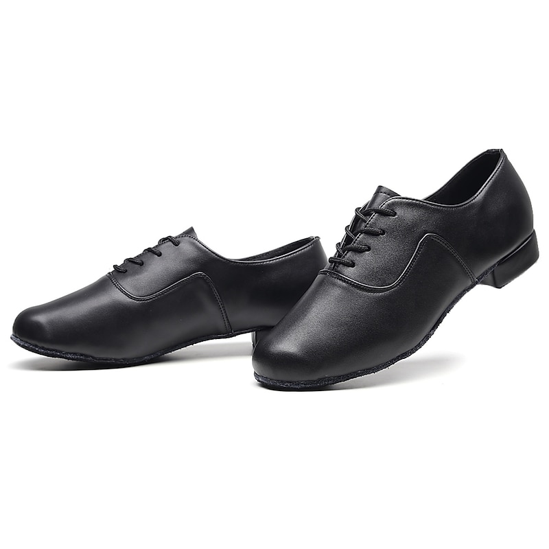 Designed in an Oxford style, these shoes feature a lace-up closure for a secure and adjustable fit. The shoes boast a classic black, polished finish, providing an elegant and professional look suitable for various dance styles.