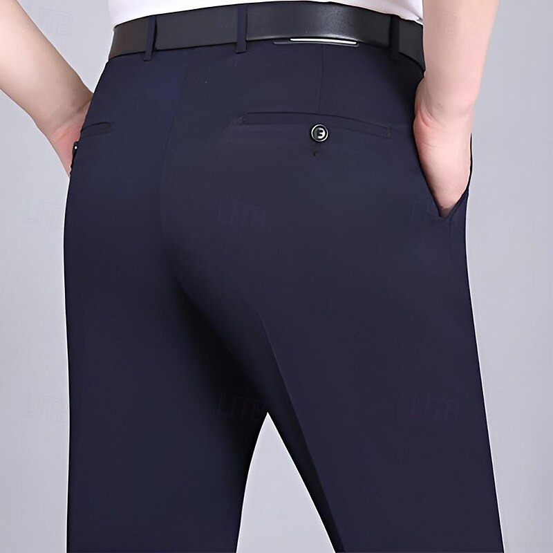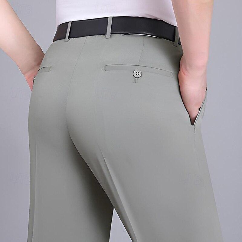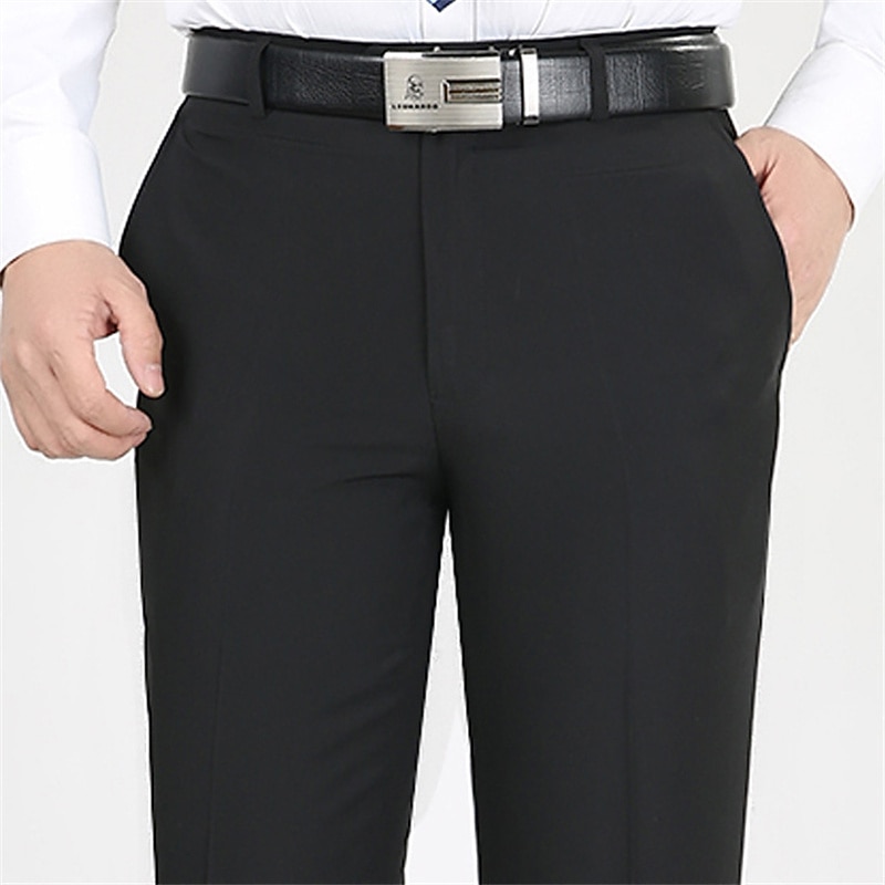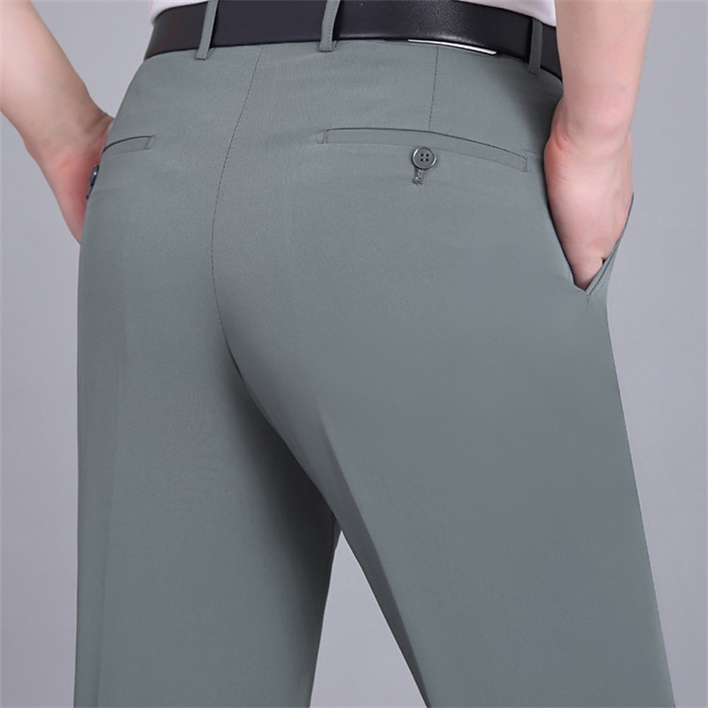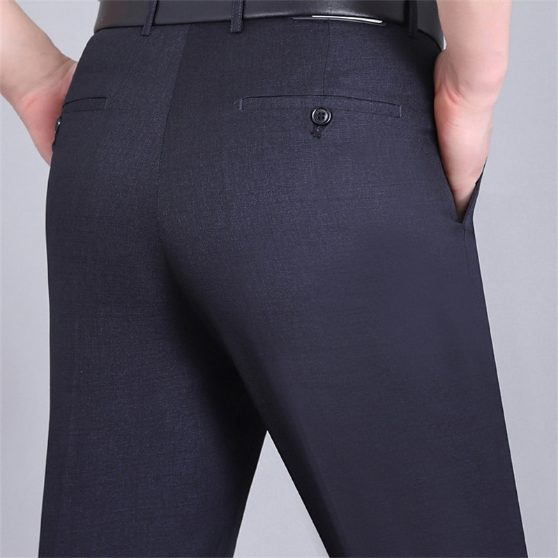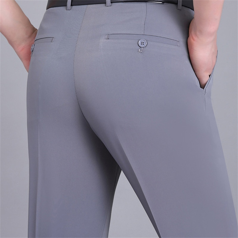 HOT ! Men's Dress Pants Trousers Casual Pants Flat Front Pants Pocket Plain Comfort Breathable Wedding Business Casual Retro Vintage Classic Black+Grey Smoky gray High Waist Stretchy