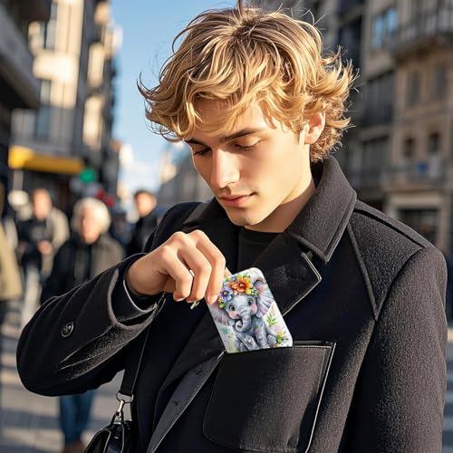 Small Credit Card Case Wallet for Women, RFID Blocking Mini Slim Leather Card Holder Wallet, Purple Baby Elephant, Pocket Business Card Case with Zipper Card Holder 7