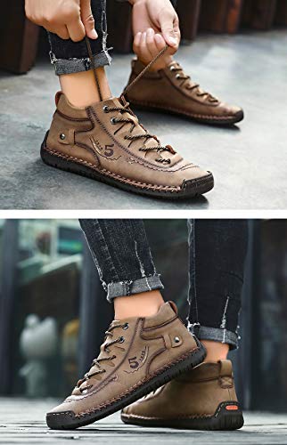 Santimon Mens Casual Oxford Shoes Flat Shoes Vintage Comfort Soft Leather Ankle Boots Lace-up Driving Shoes 7