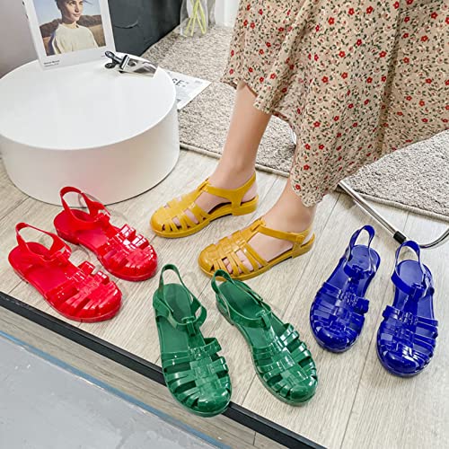 Women's Crystal Jelly Low Heel Sandals,Summer brand-new Closed Toe Slingback Ankle Strap Sheer silky Fisherman Beach Shoes