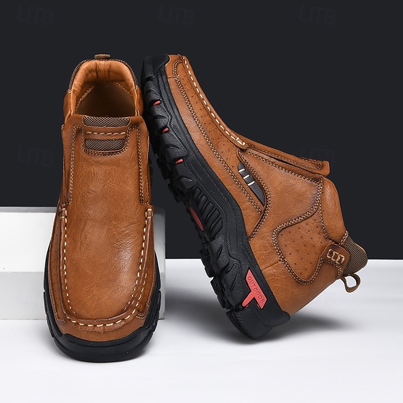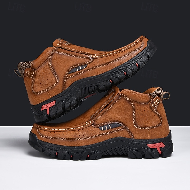 HOT ! Men's Brown Outdoor Hiking Shoes – Durable Lace-Up Trail Moccasins with Non-Slip Sole for Camping, Work and Everyday Casual Wear