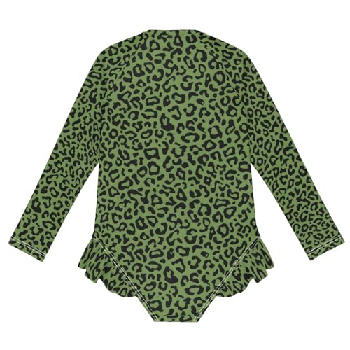 ALAZA Toddler Swimsuit Girl Bathing Suit Swimwear Rash Guard Green Leopard Cheetah Long Sleeve 3T 6
